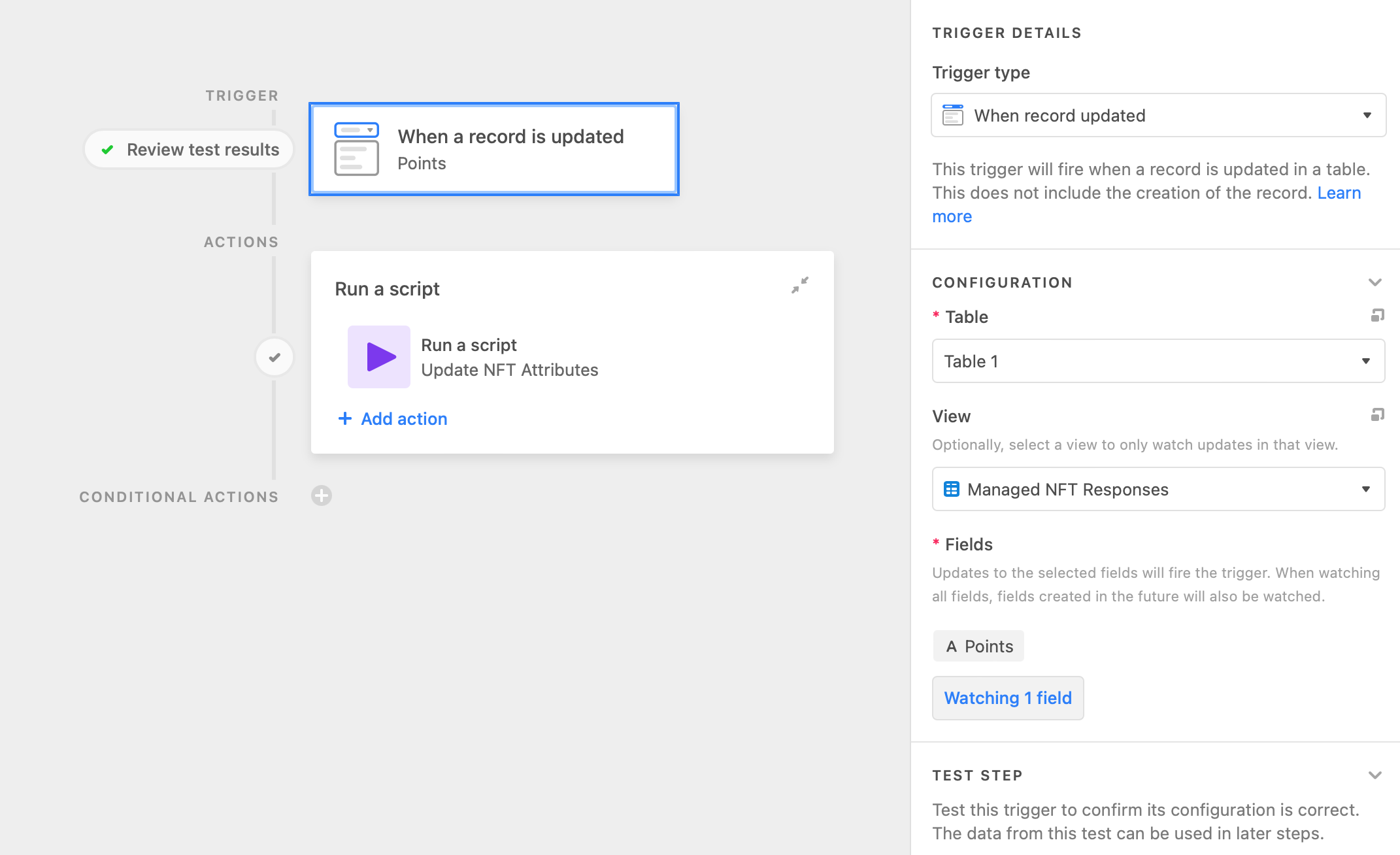 Once we have the updated record, we can take the mint address and points from the record and pass it into our script action.&#x20;